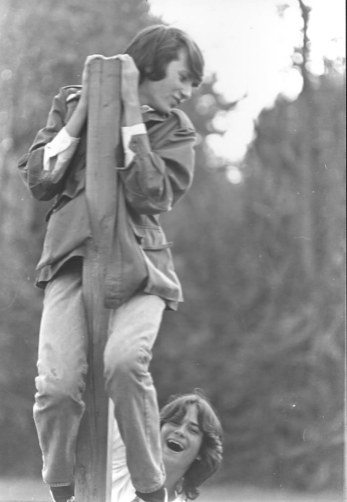 Bill Gilbert climbing, Nick Kane in back. Circa 1980. Bill Gilbert is HHS 1982 and Nick Kane is HHS 1981.