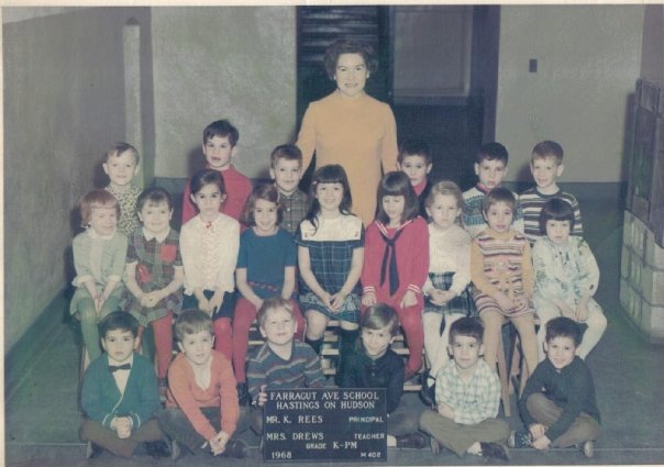 The people in this class are HHS 1980 Graduates. This is during kindergarten in 1968. The teacher is Mrs. Drewes.