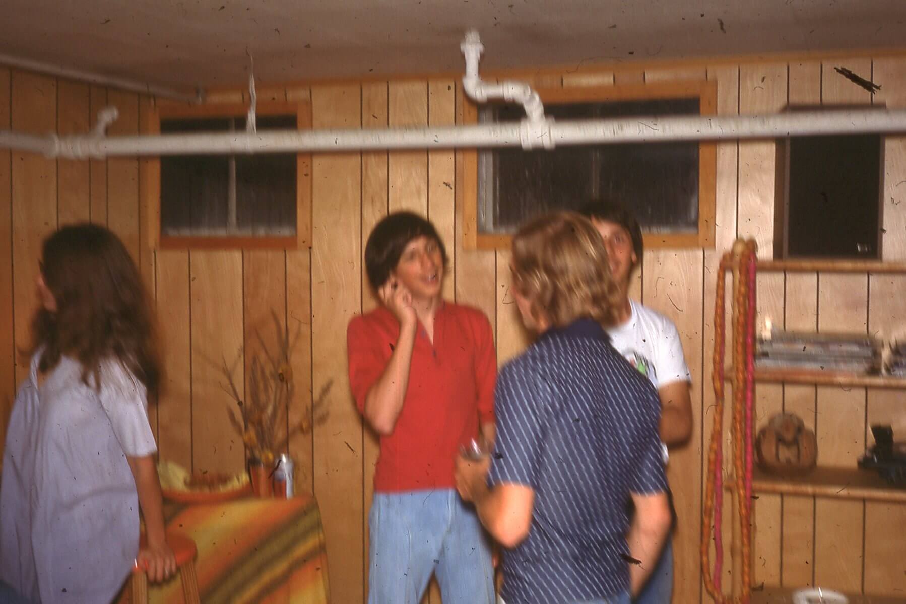 This was a party at the Edelmans in the summer of 1976. Doug Brkich and Stu Grant are facing Jeff Edelman.
