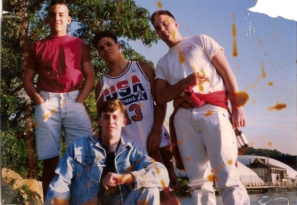 Derek Joyce, Keith Burghardt, Damien McQuaid, and one other friend at the waterfront. Derek, Keith, and Damien are all HHS 1993.