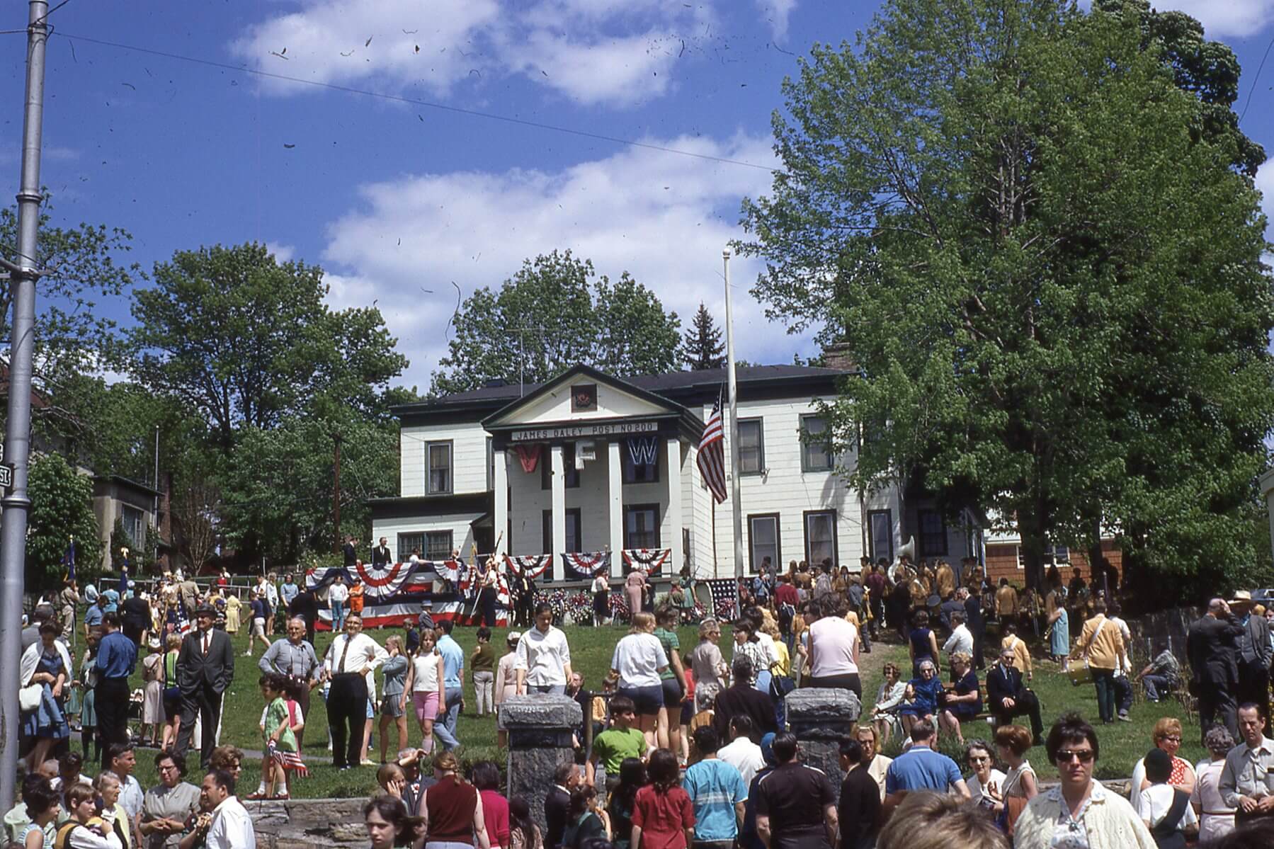 Crowd is assembled in front of the VFW during the 1967 Memorial Day Parade.