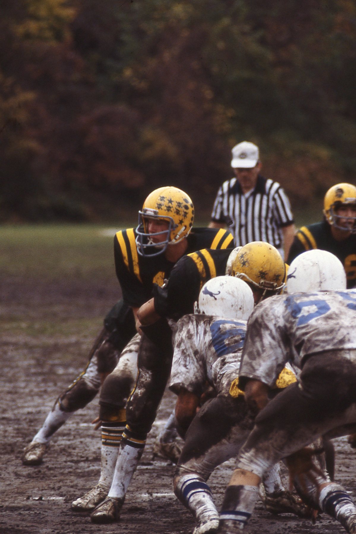 Taylor Montgomery/Gordon Solovey Football Collection. 1978-1981. Picture 102 of 296. Hastings with the ball in muddy conditions. 1979.