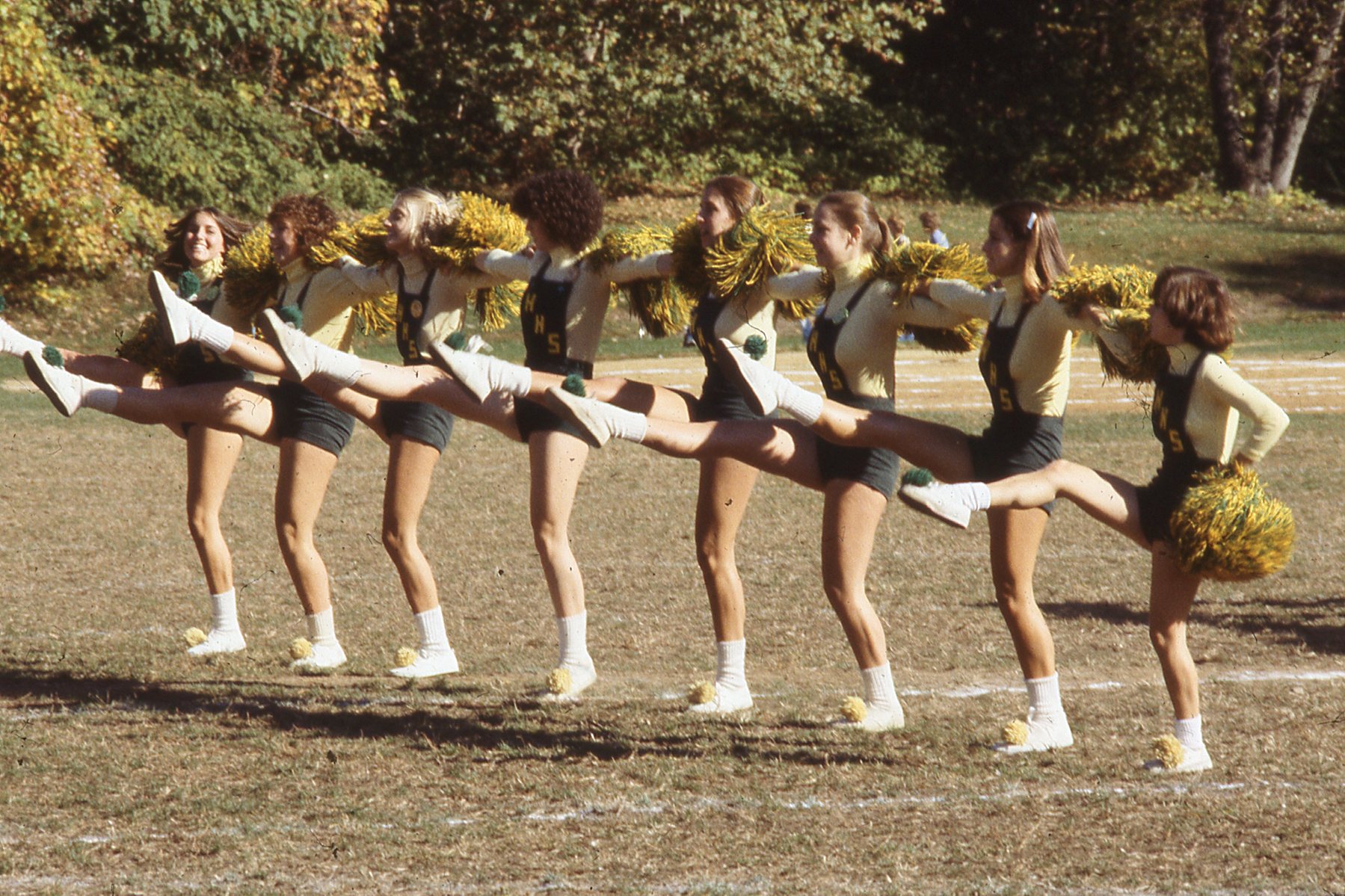 Taylor Montgomery/Gordon Solovey Football Collection. 1978-1981. Picture 19 of 296. Hudsonettes performing at halftime show in 1978. Identifiable are Pam Localio, Suzy Hopkins, Hanni Dorn, Bronwyn Eaton.