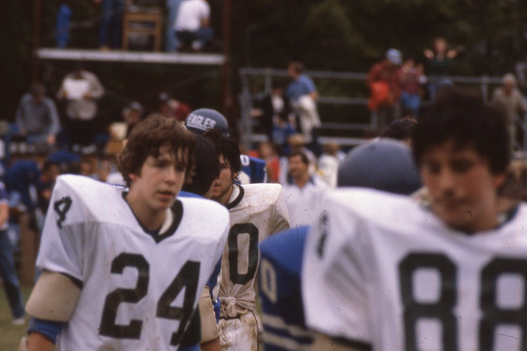 Taylor Montgomery/Gordon Solovey Football Collection. 1978-1981. Picture 193 of 296. Peter Fogarty is number 24. Vinny Civitano is number 88. Hastings at Dobbs. Fall 1981.