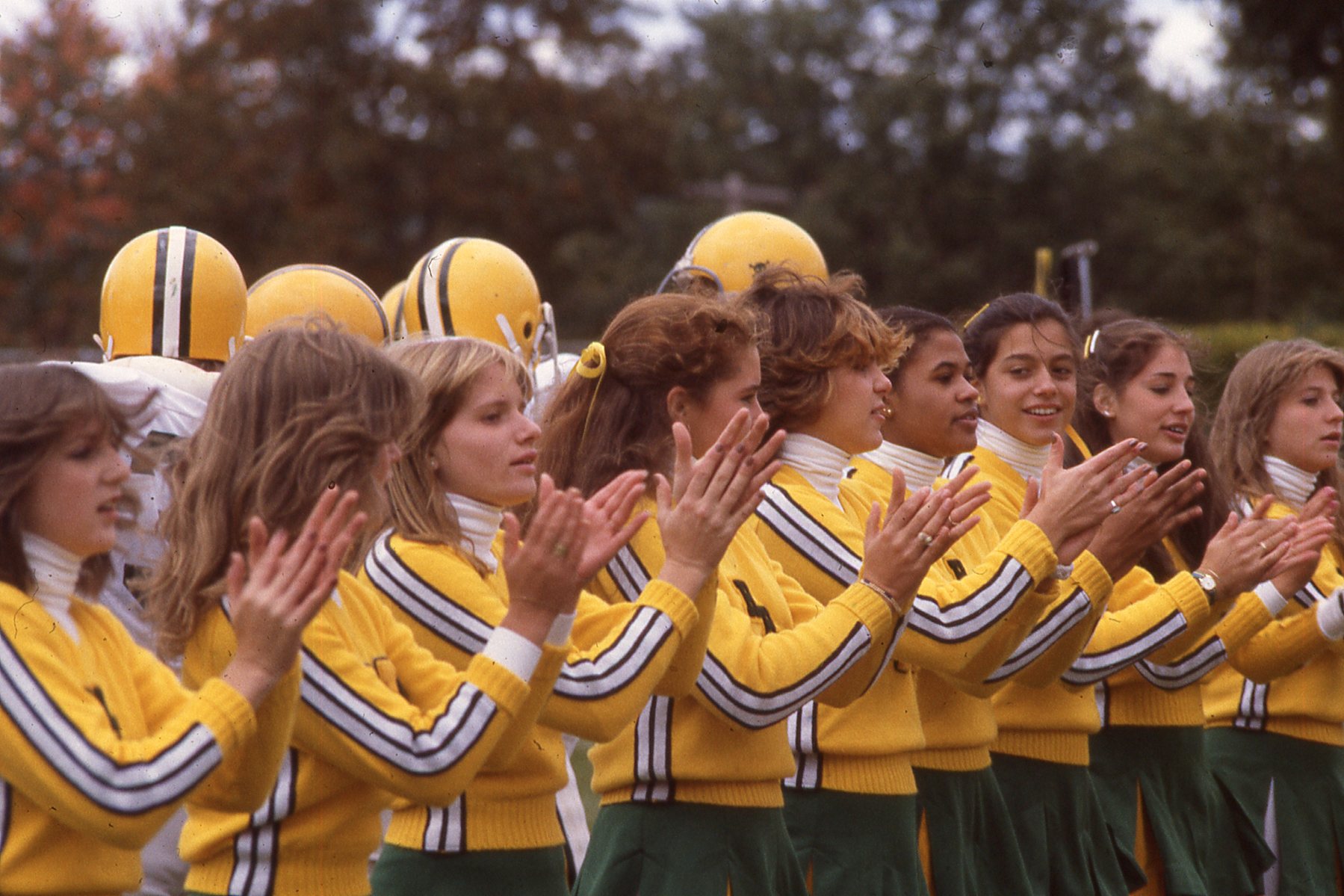Taylor Montgomery/Gordon Solovey Football Collection. 1978-1981. Picture 202 of 296. Cheerleaders in 1981. Lisa Schmidt, Nicole Kuckley, Patti Lewis, Diane Dilascio, Amy Matza are recognizable.