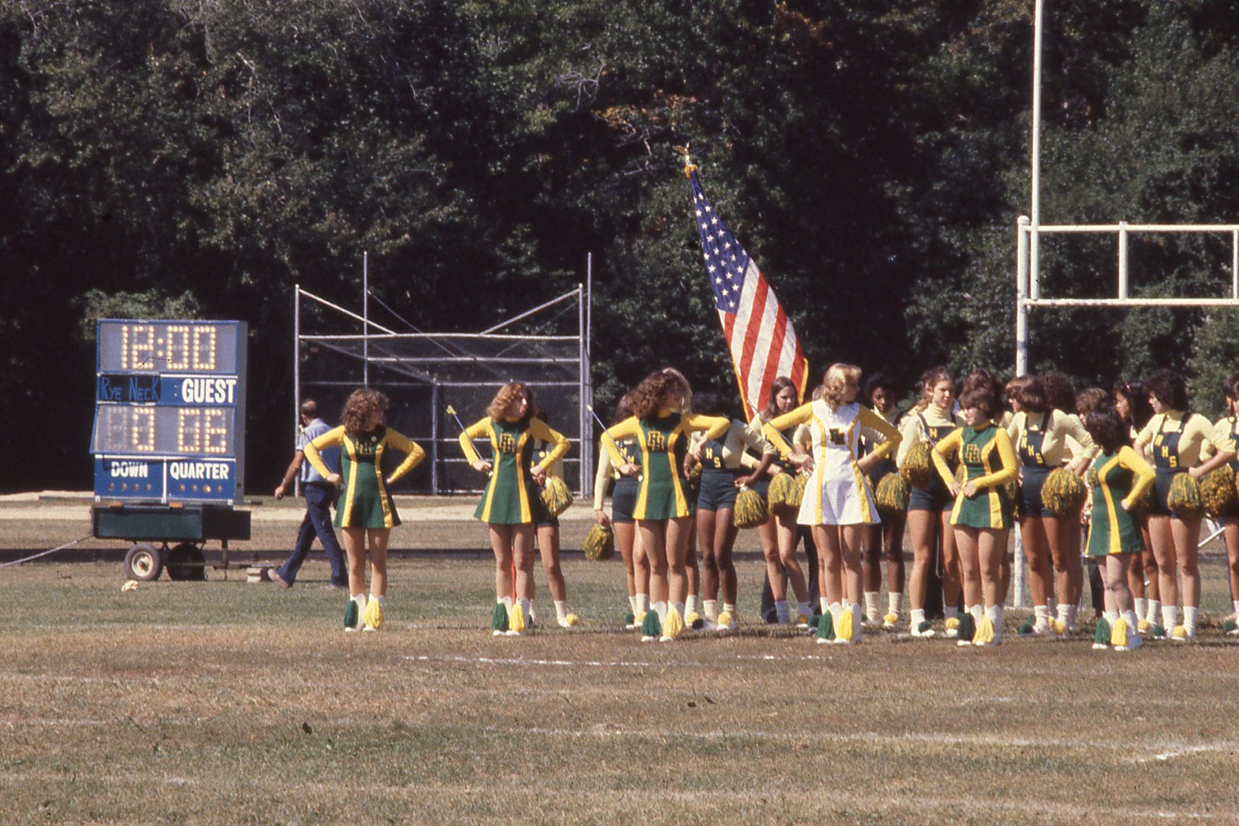 Taylor Montgomery/Gordon Solovey Football Collection. 1978-1981. Picture 27 of 296. Twirlers and Hudsonettes preparing to go on the field. Circa 1978.