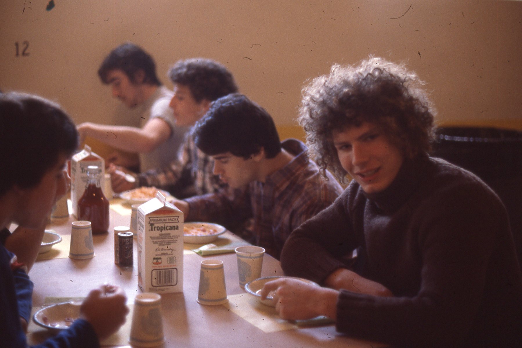 Taylor Montgomery/Gordon Solovey Football Collection. 1978-1981. Picture 272 of 296. At a pre-game breakfast in 1981. Dave Robinson, Mike Mancuso, Tommy Robbins, Terry Ryan on right. James Grant on left.