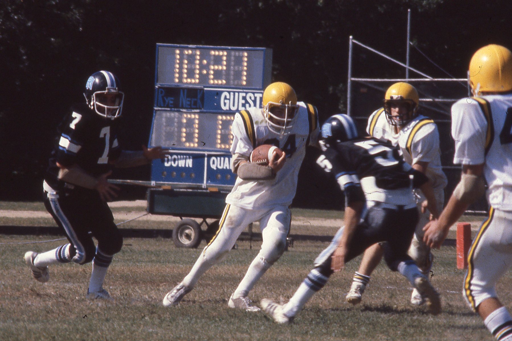 Taylor Montgomery/Gordon Solovey Football Collection. 1978-1981. Picture 28 of 296. Hastings at Rye Neck. Circa 1978. Hastings with the football.