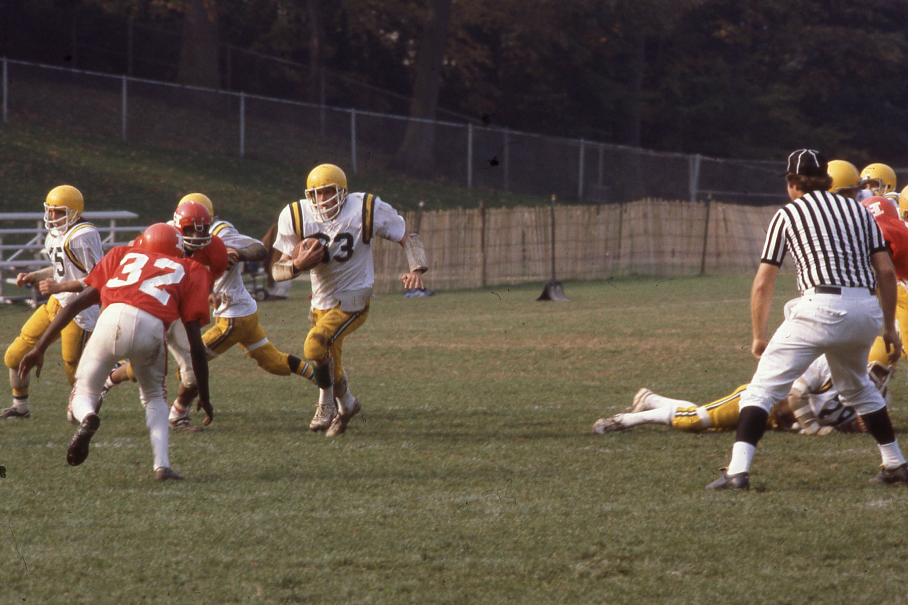 Taylor Montgomery/Gordon Solovey Football Collection. 1978-1981. Picture 53 of 296. Justin Tunick running the ball versus Alexander Hamilton. 1979. Junior Varsity.