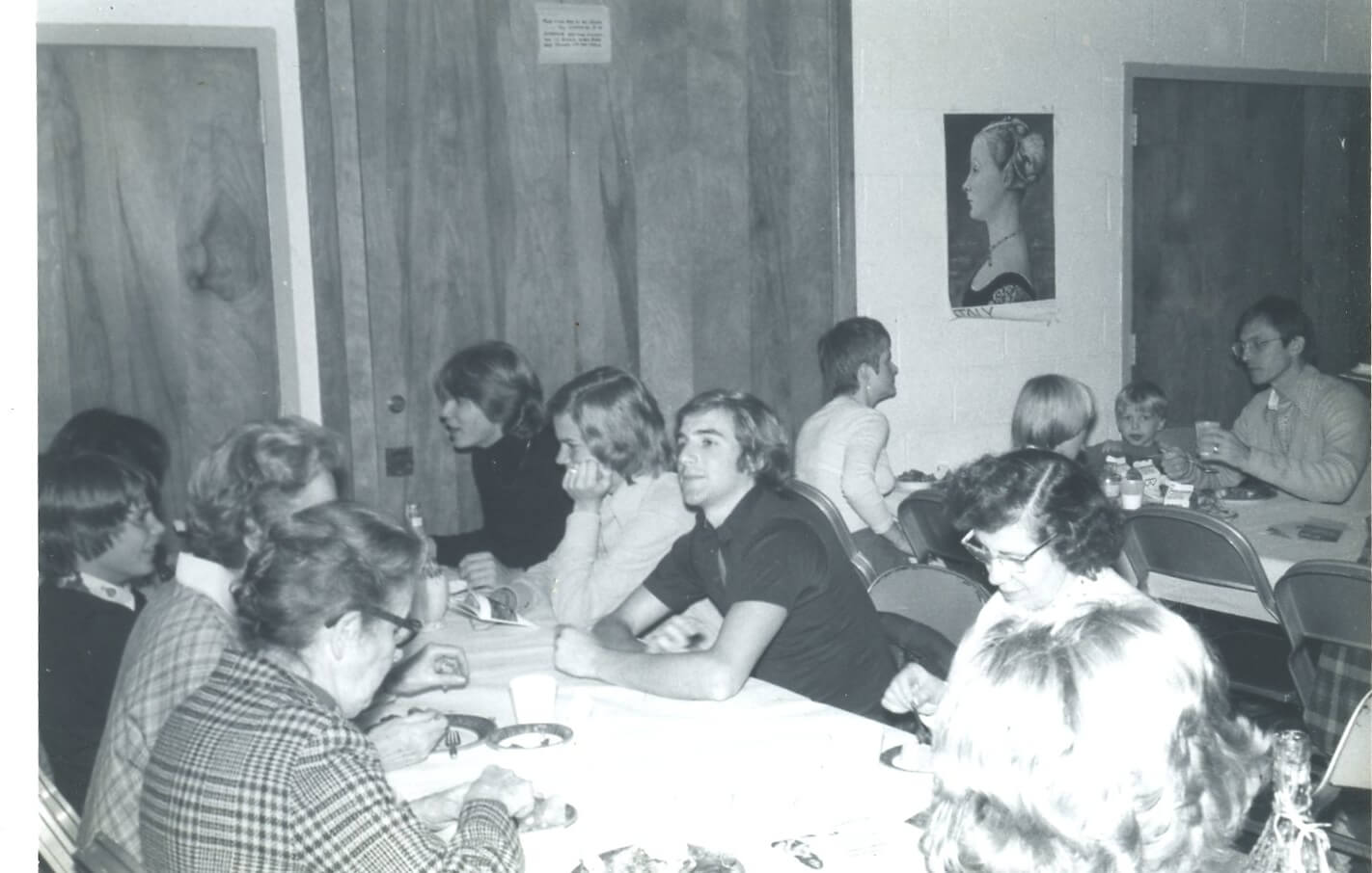 Nobody can recall this event. It was held at a church circa 1979. Identifiable people in this picture are Jeff Edelman, with Peter Callahan to his right. Almost definitely Doug Humphreys to Peter’s right. Michael Haje across from Jeff Edelman. May very well be the teacher, Mrs. Jayson, at that table. In the rear table is the Hutson family. Josh Hutson is facing the camera. His father is to his left. His mother is across from him, and Rachel Hutson is to her mom’s right.