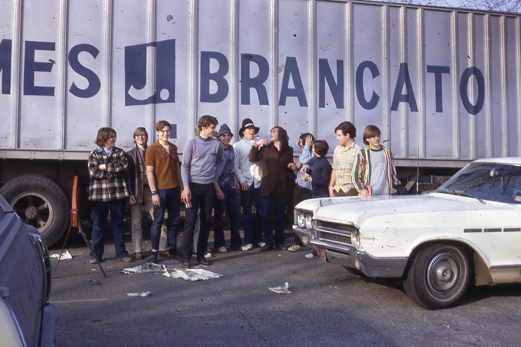 This is a newspaper recycling event sponsored by the Key Club in 1971. Identifiable people in the picture are Jim Gardner, Matt Nehrbauer, Joel Goldman, Mike Zulauf, and Phil Blasberg.