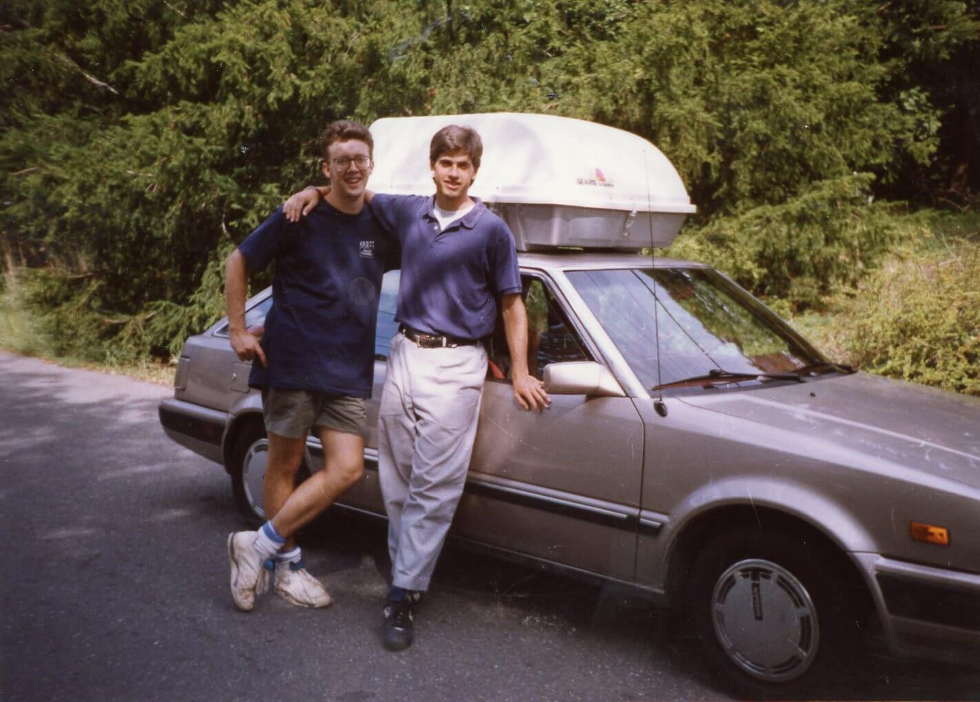 Rich Thomas saying good-bye to Tom Guglielmo, as Tom moves away from Hastings in 1991.