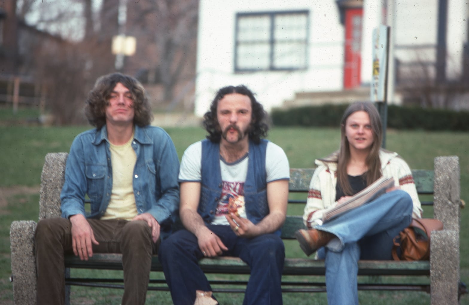 Tom McCue, Patsy Cammisa, Marjorie McCue sitting on a bench in front of the VFW. Probably in the early to mid 1970’s.